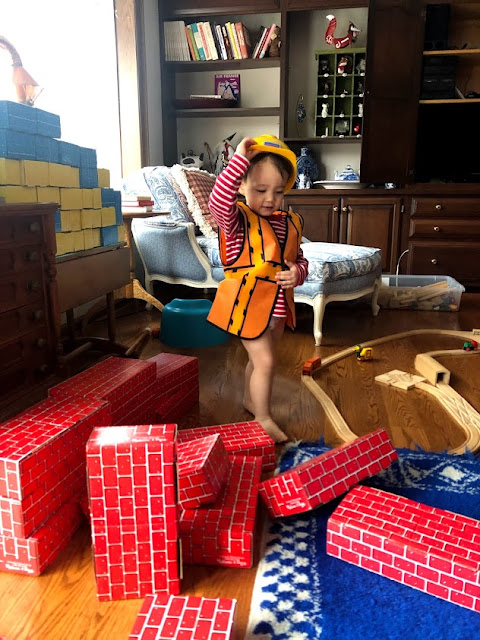 During January, we made progress on the potty training. For a few weeks, almost every time he needed the bathroom (while at home at least), he used the toilet. I noticed him making compound sentences, such as "Yesterday I go pee pee, and today I take underground train."